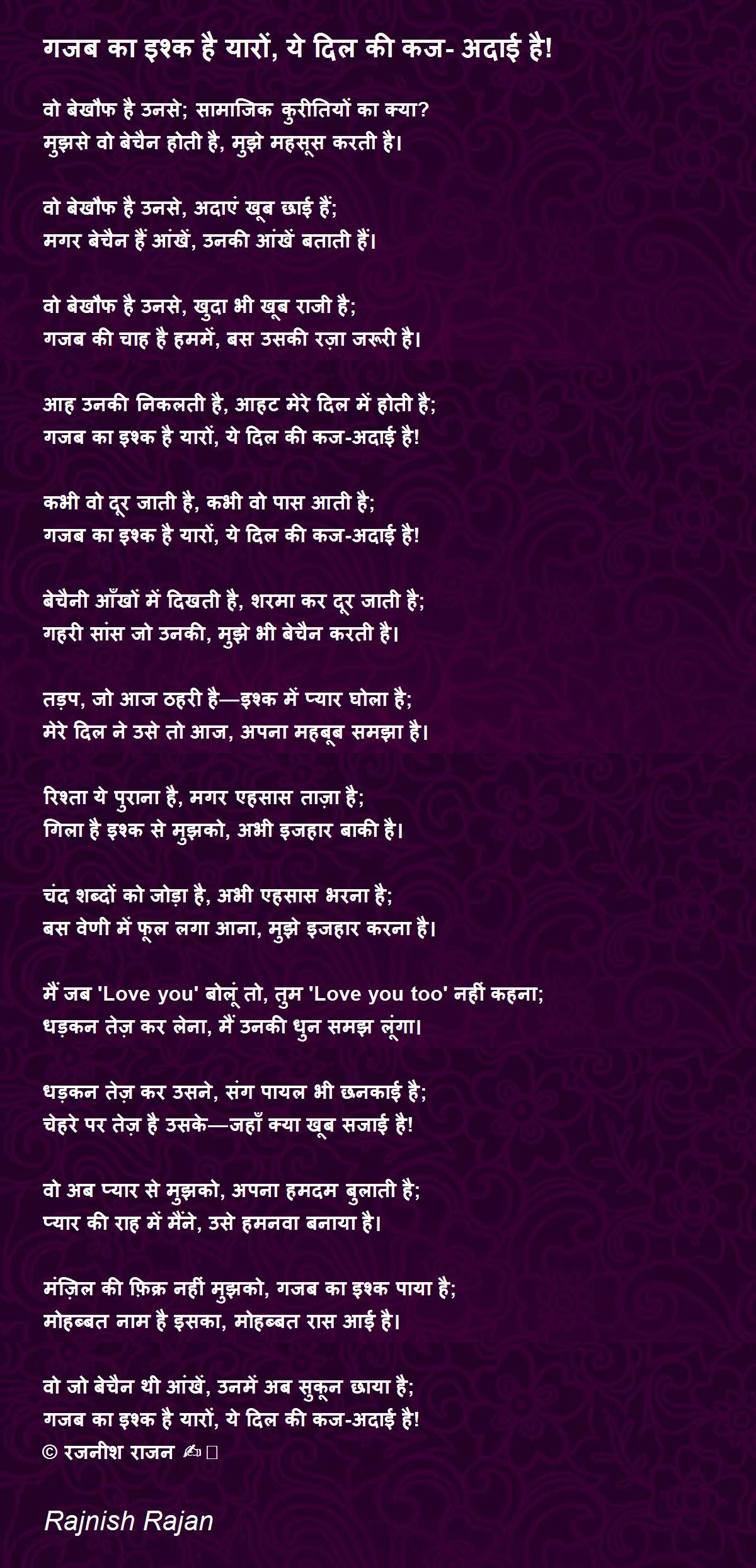 गजब का इश्क है यारों, ये दिल की कज-अदाई है!