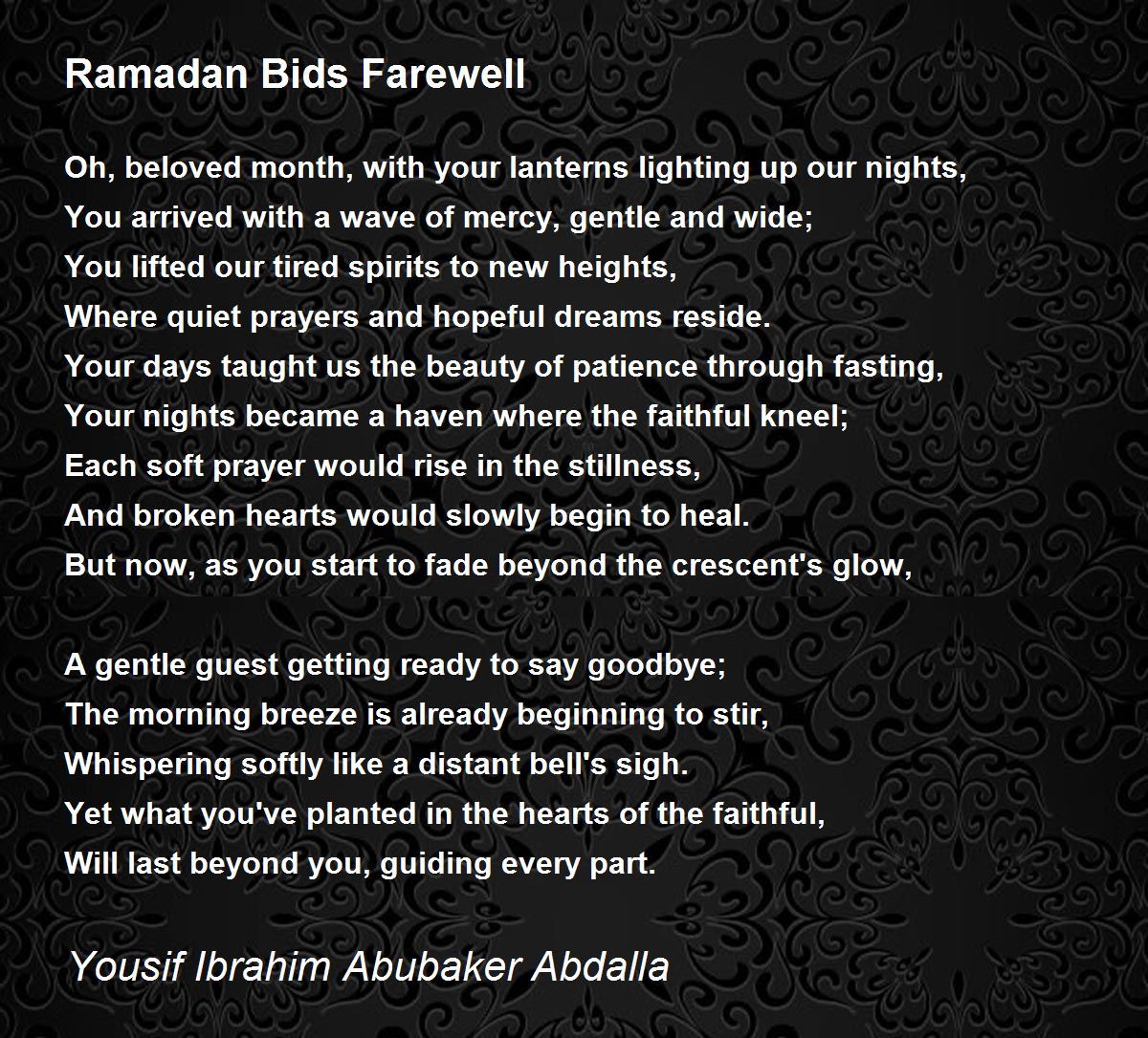 Oh, beloved month, with your lanterns lighting up our nights,