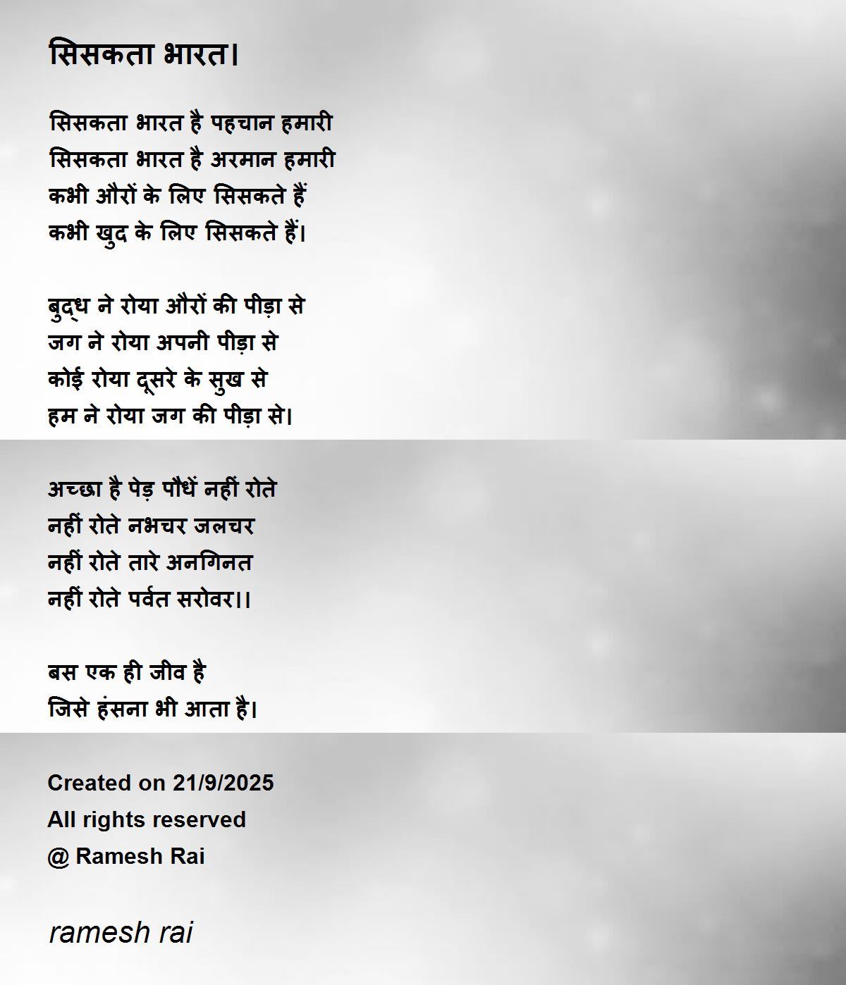 सिसकता भारत। Poem by ramesh rai