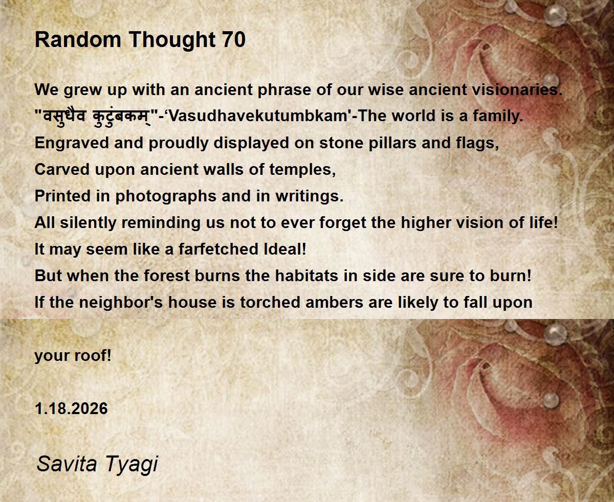 "वसुधैव कुटुंबकम्"-‘Vasudhavekutumbkam'-The world is a family.