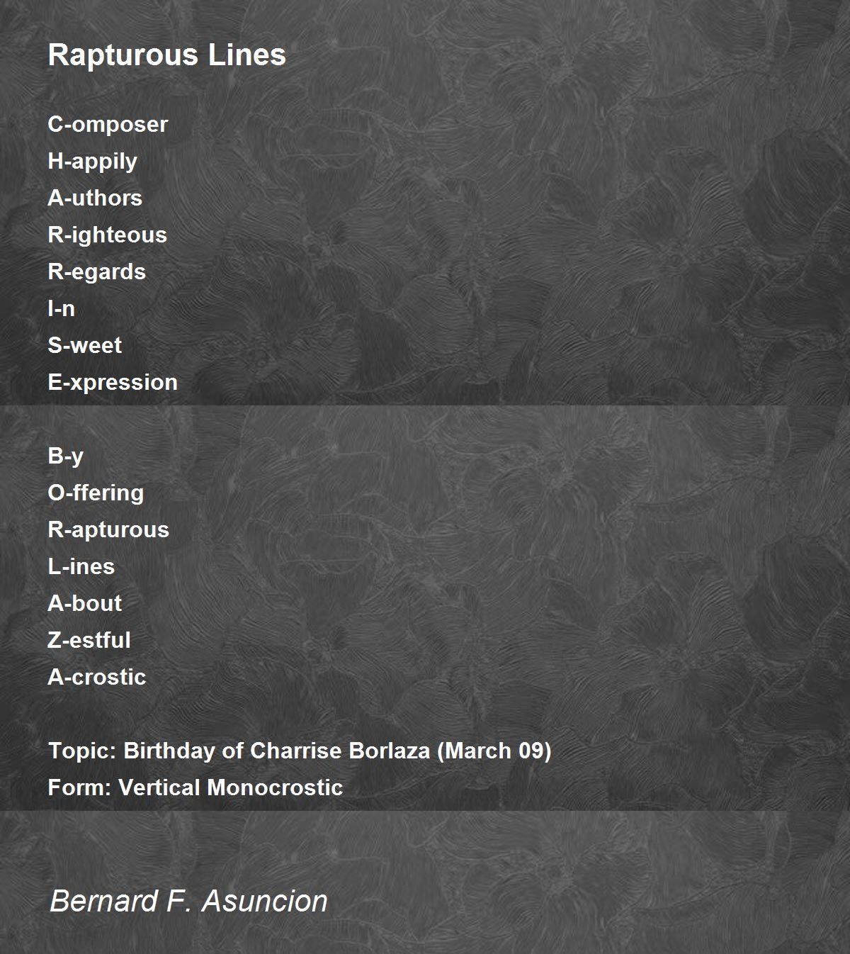 Topic: Birthday of Charrise Borlaza (March 09)