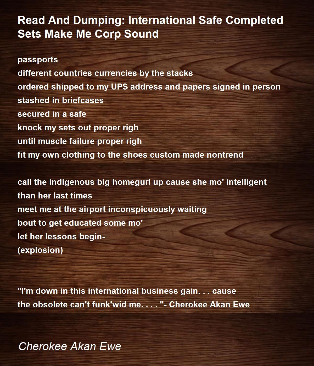 "I'm down in this international business gain... cause the obsolete can't funk'wid me...."-Cherokee Akan Ewe