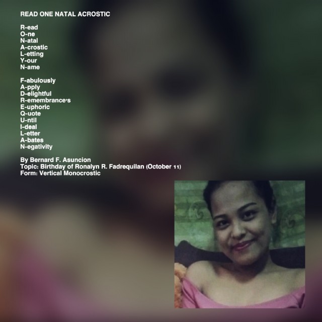 Topic: Birthday of Ronalyn R. Fadrequilan (October 11)