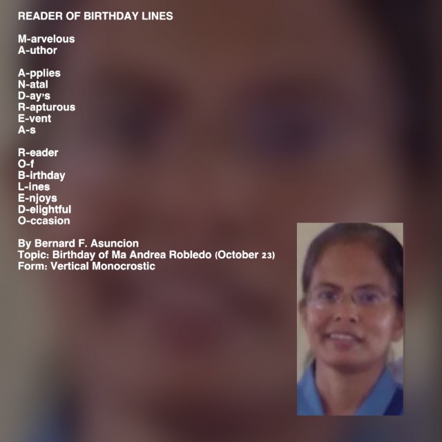 Topic: Birthday of Ma Andrea Robledo (October 23)