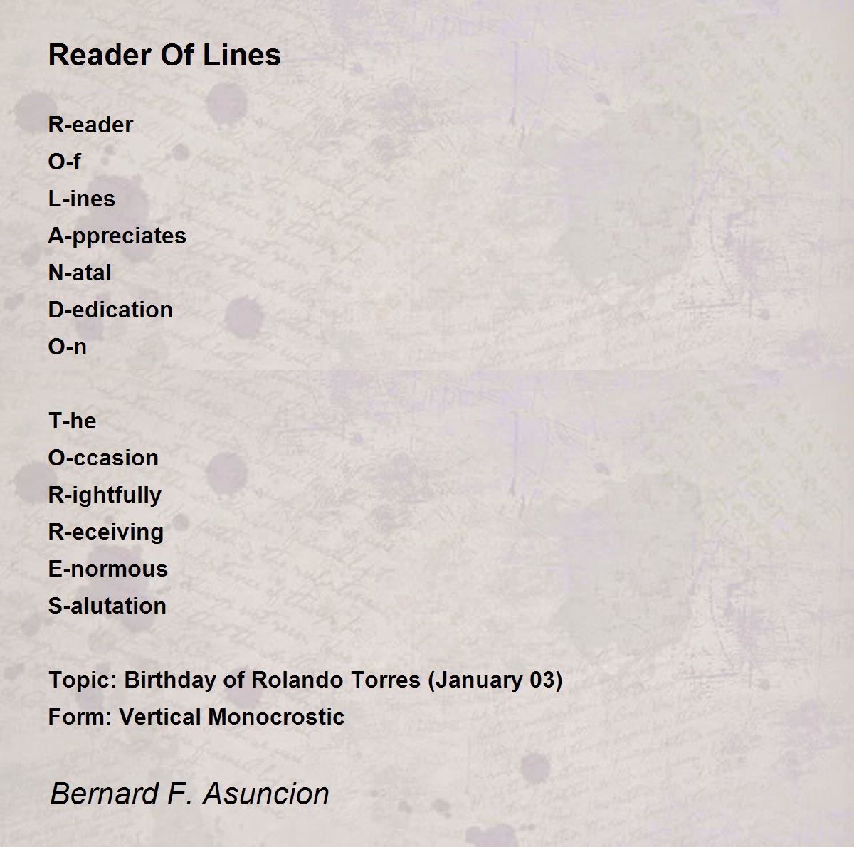 Topic: Birthday of Rolando Torres (January 03)
