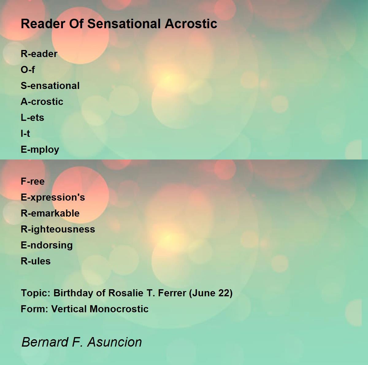 Topic: Birthday of Rosalie T. Ferrer (June 22)