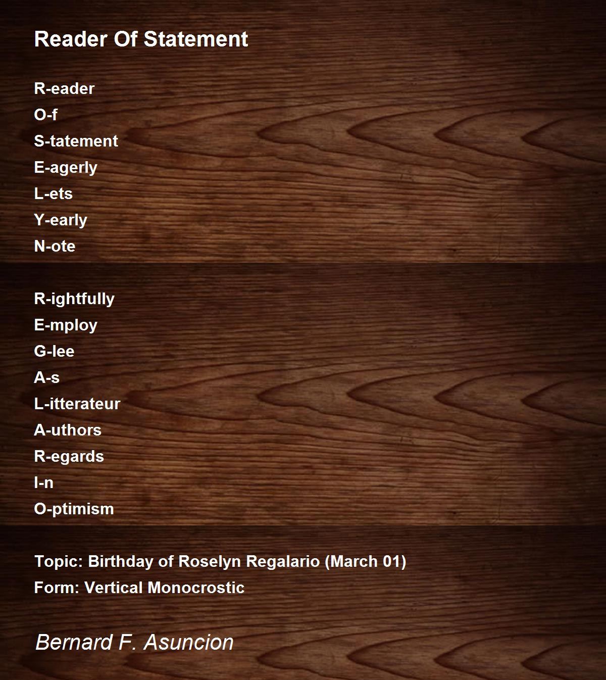 Topic: Birthday of Roselyn Regalario (March 01)