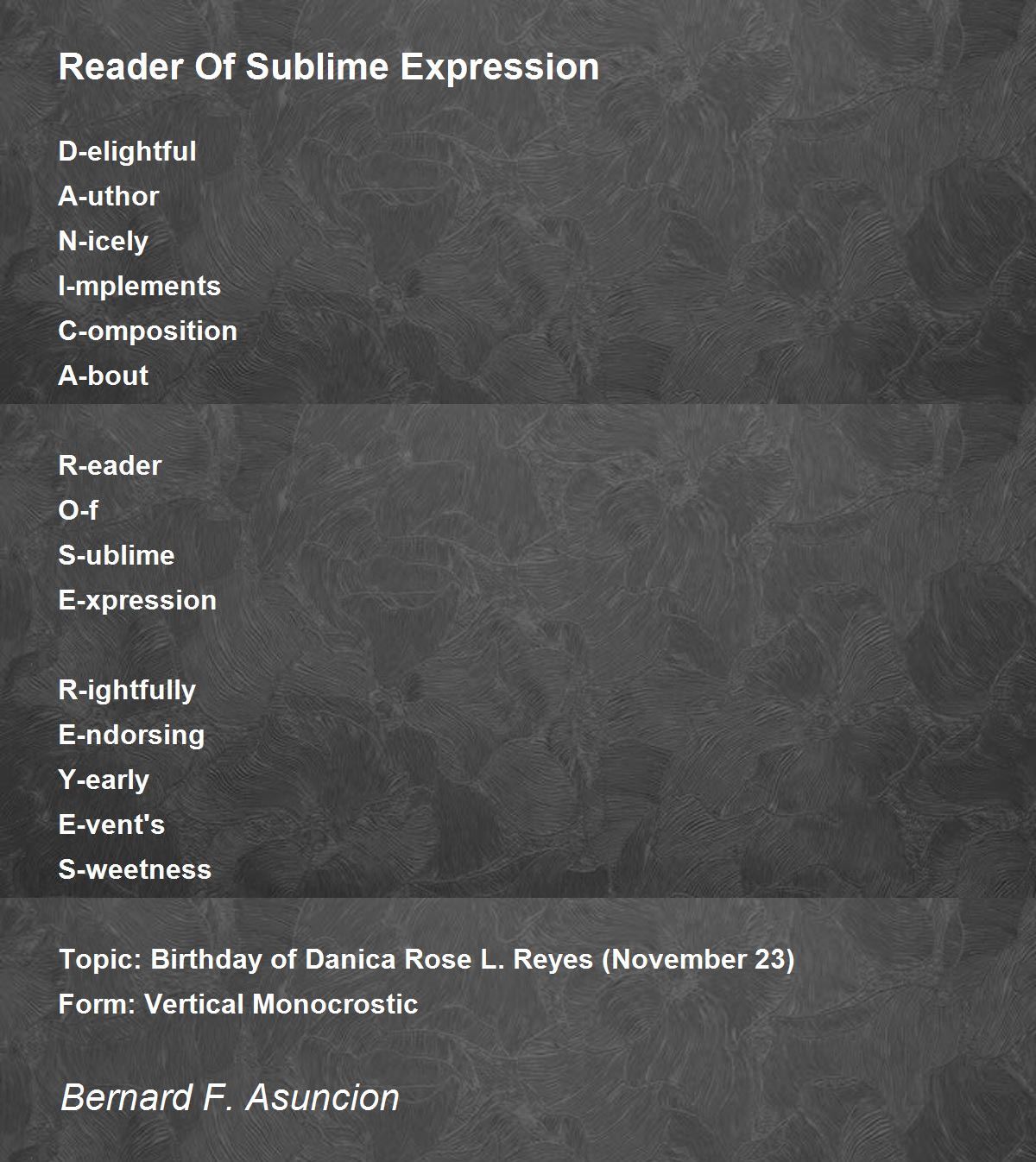 Topic: Birthday of Danica Rose L. Reyes (November 23)