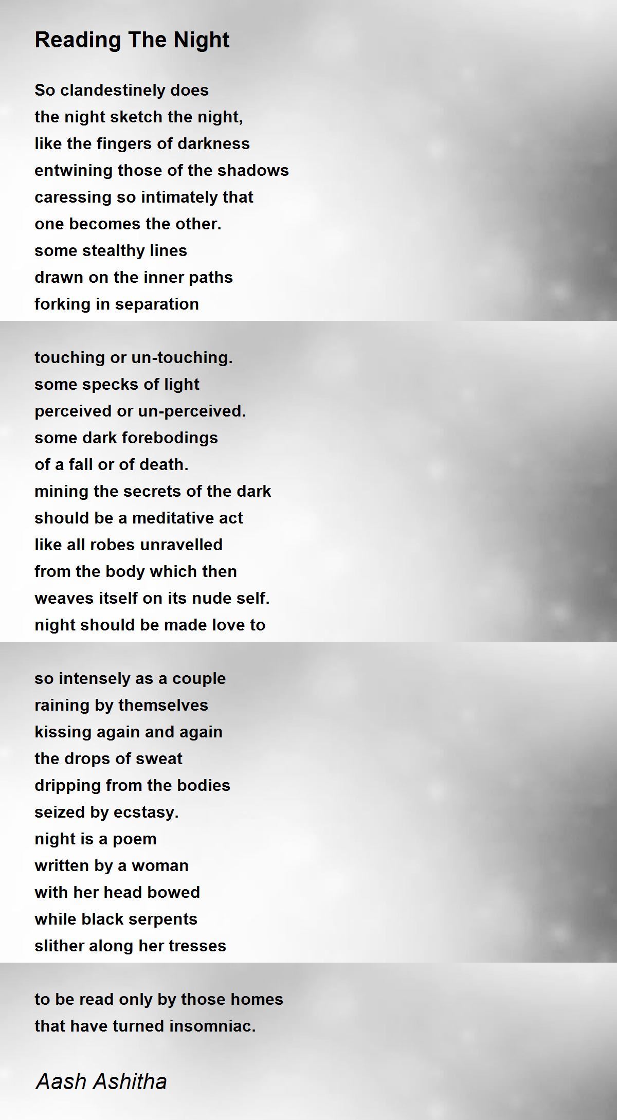 A very fascinating poem on night...magnificent imagery. enjoyed reading it..10