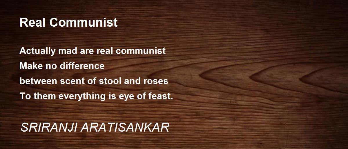 Actually mad are real communist Make no difference between scent of stool and roses To them everything is eye of feast.