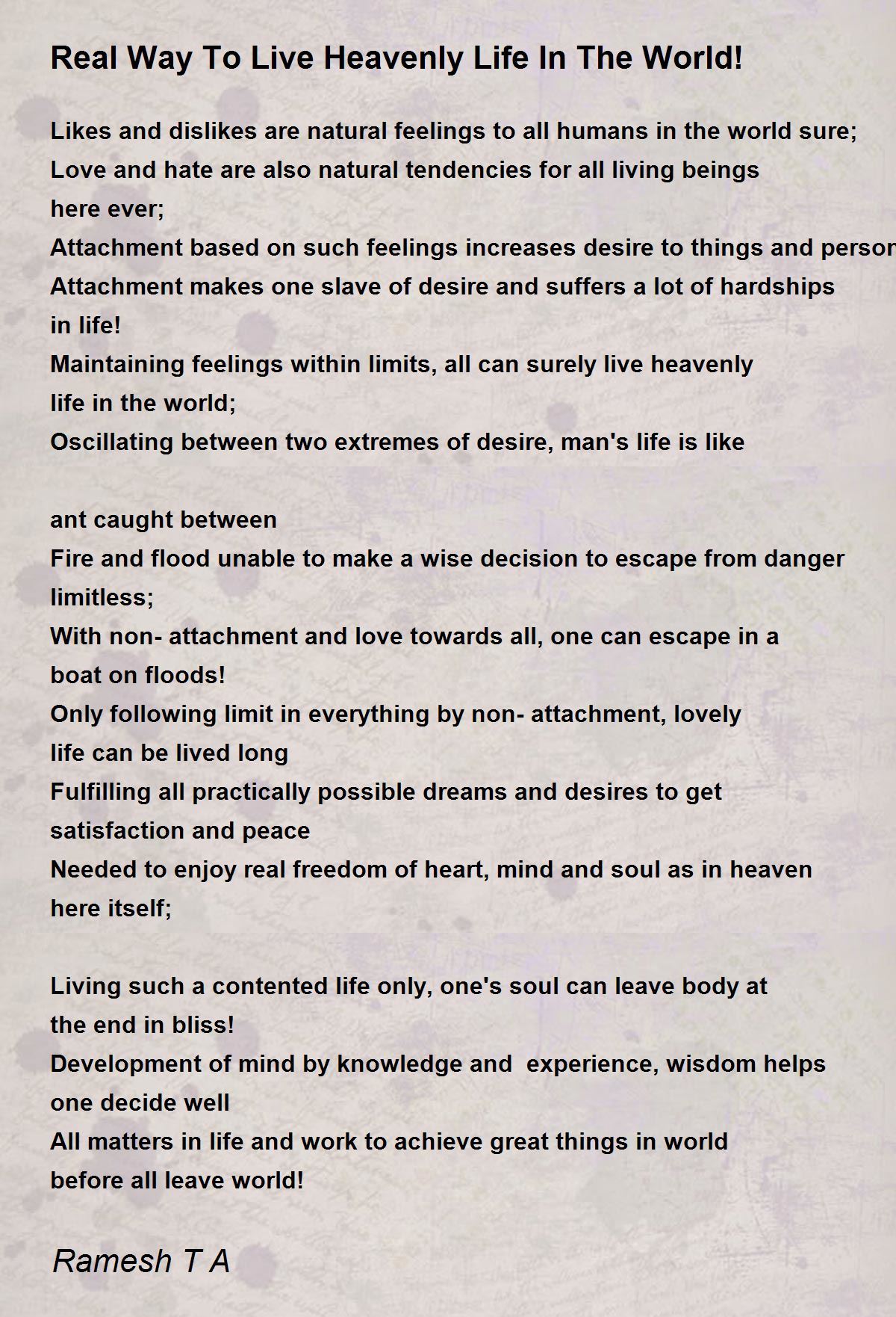 Only following limit in everything by non-attachment, lovely life can be lived long