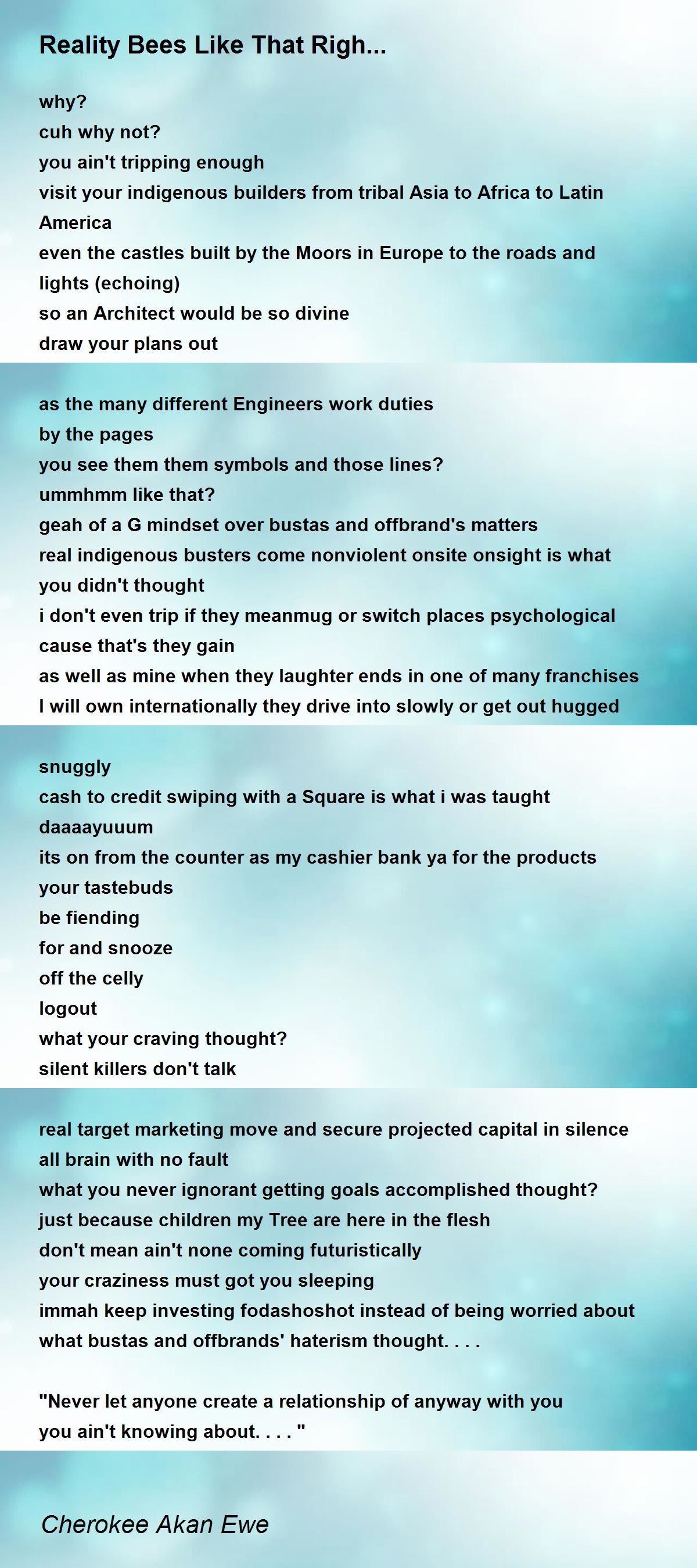 "Never let anyone create a relationship of anyway with you you ain't knowing about...."