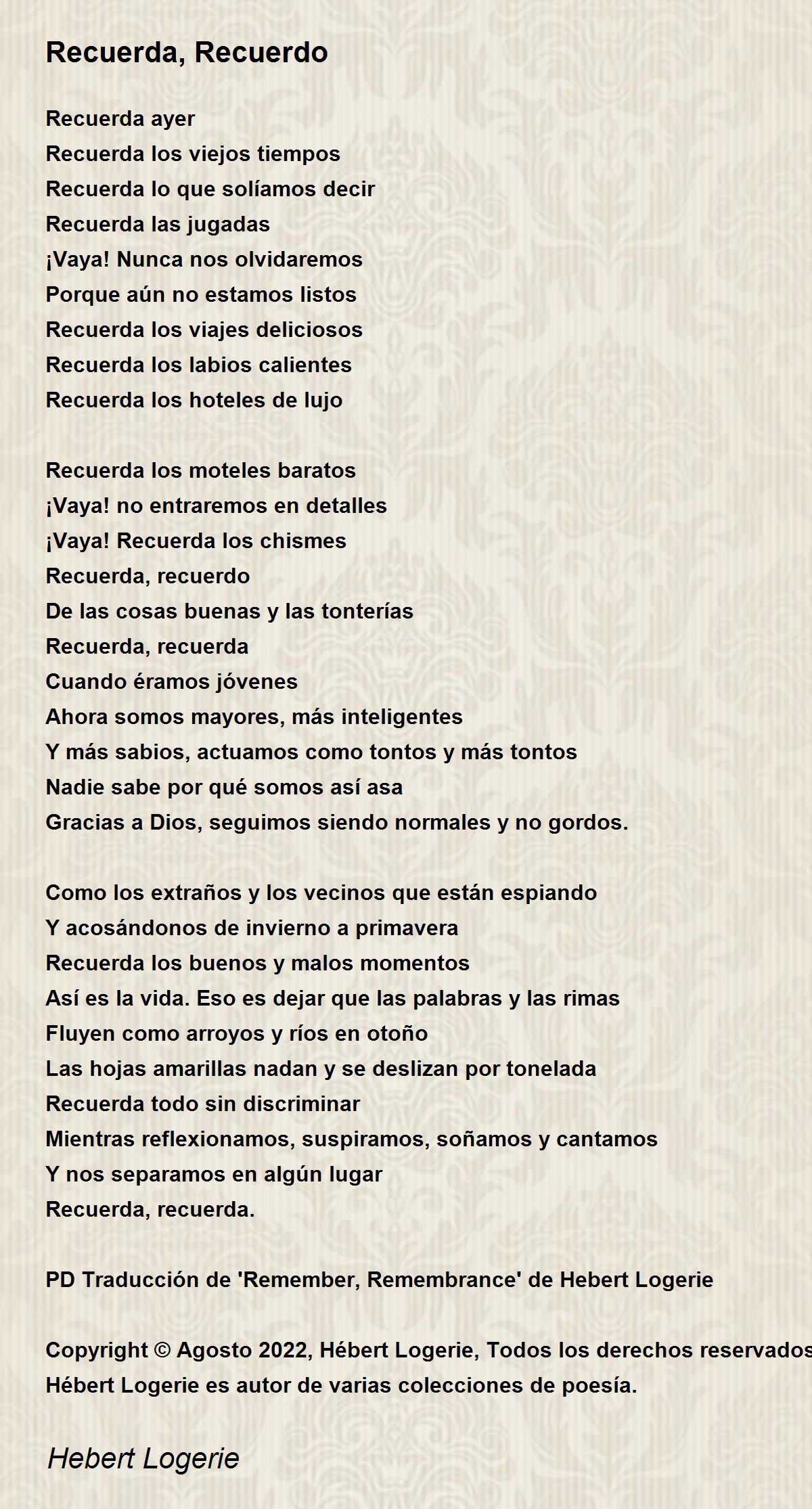 PD Traducción de 'Remember, Remembrance' de Hebert Logerie