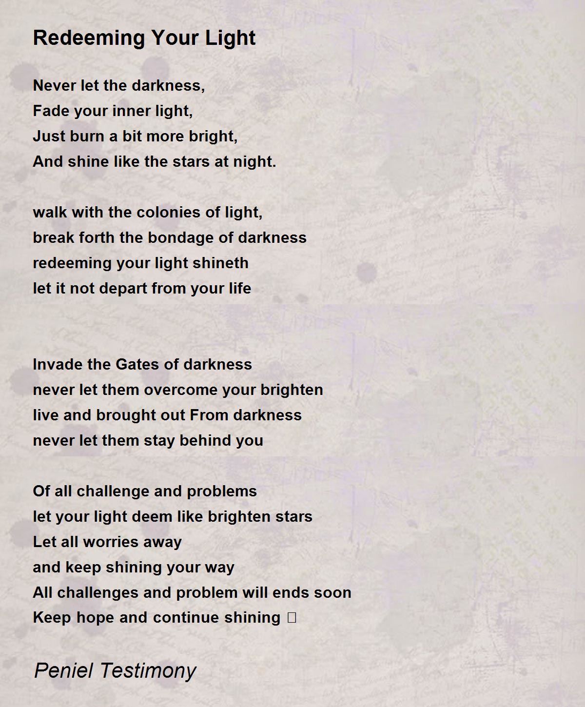 Let your light permanently shine to dispel darkness. Beautiful poem