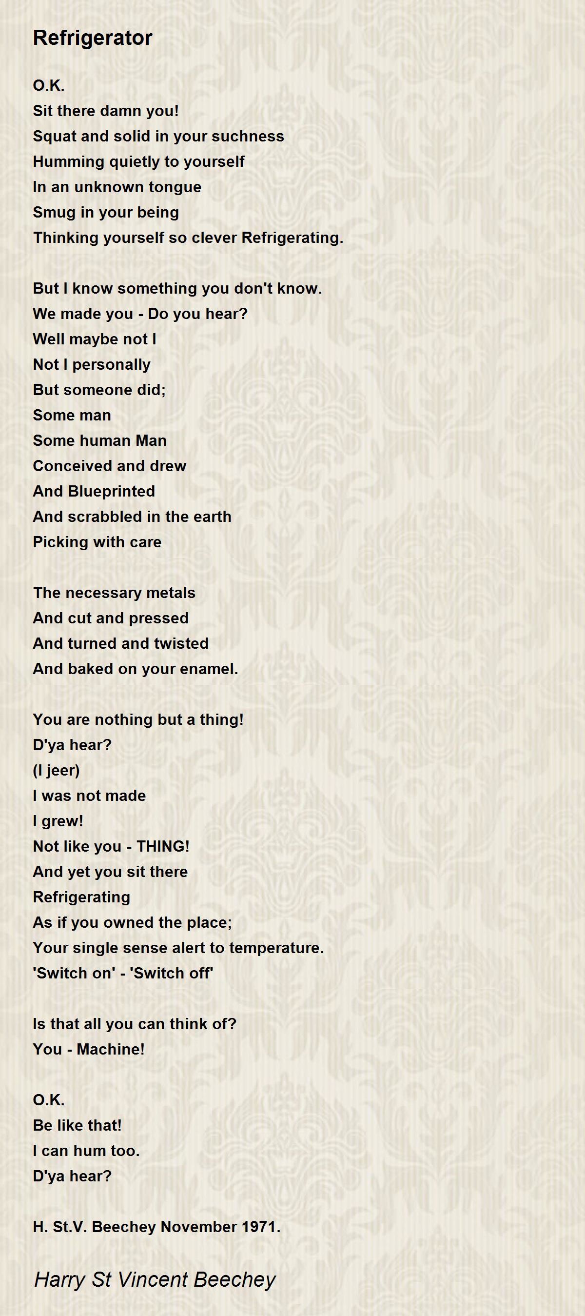 Thinking yourself so clever Refrigerating.