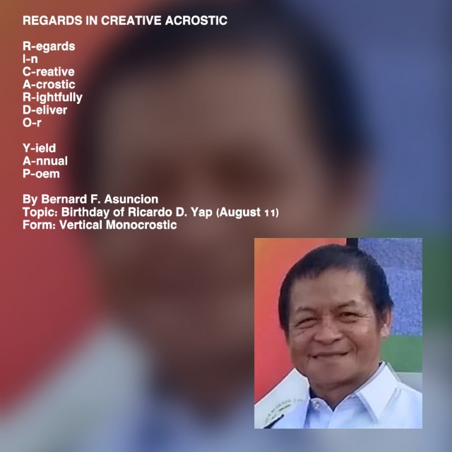 Topic: Birthday of Ricardo D. Yap (August 11)