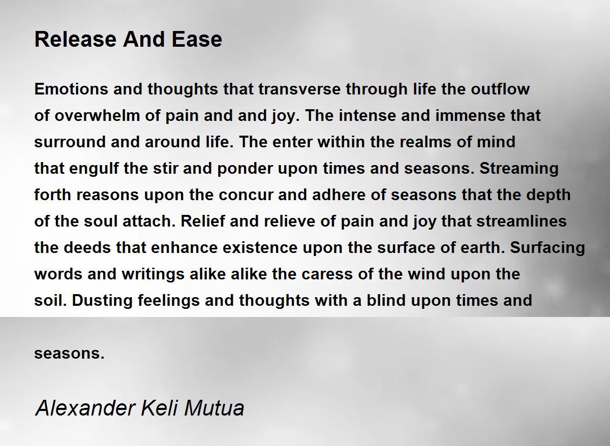 Emotions and thoughts that transverse through life the outflow of overwhelm of pain and and joy. The intense and immense that surround and around life. The enter within the realms of mind that engulf the stir and ponder upon times and seasons. Streaming forth reasons upon the concur and adhere of seasons that the depth of the soul attach. Relief and relieve of pain and joy that streamlines the deeds that enhance existence upon the surface of earth. Surfacing words and writings alike alike the caress of the wind upon the soil. Dusting feelings and thoughts with a blind upon times and seasons.
