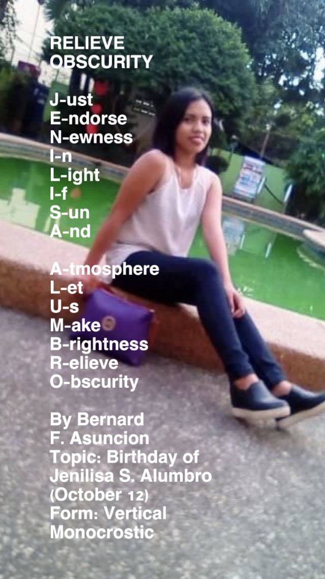 Topic: Birthday of Jenilisa S. Alumbro (October 12)
