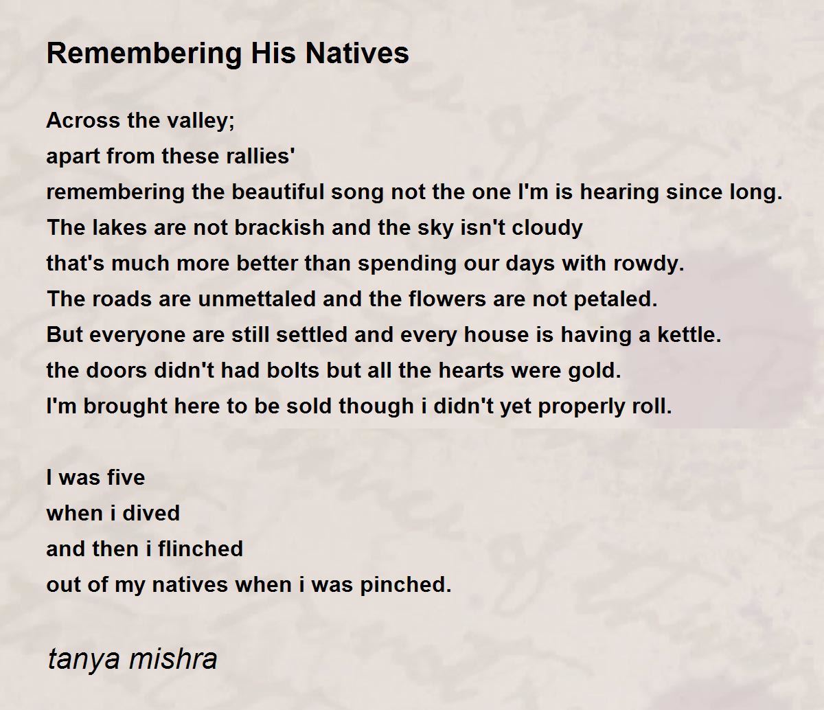It's extremely nostalgic.Just loved reading it.but couldn't understand the meaning of 'i was brought here to be sold'.would be great he u could explain it.