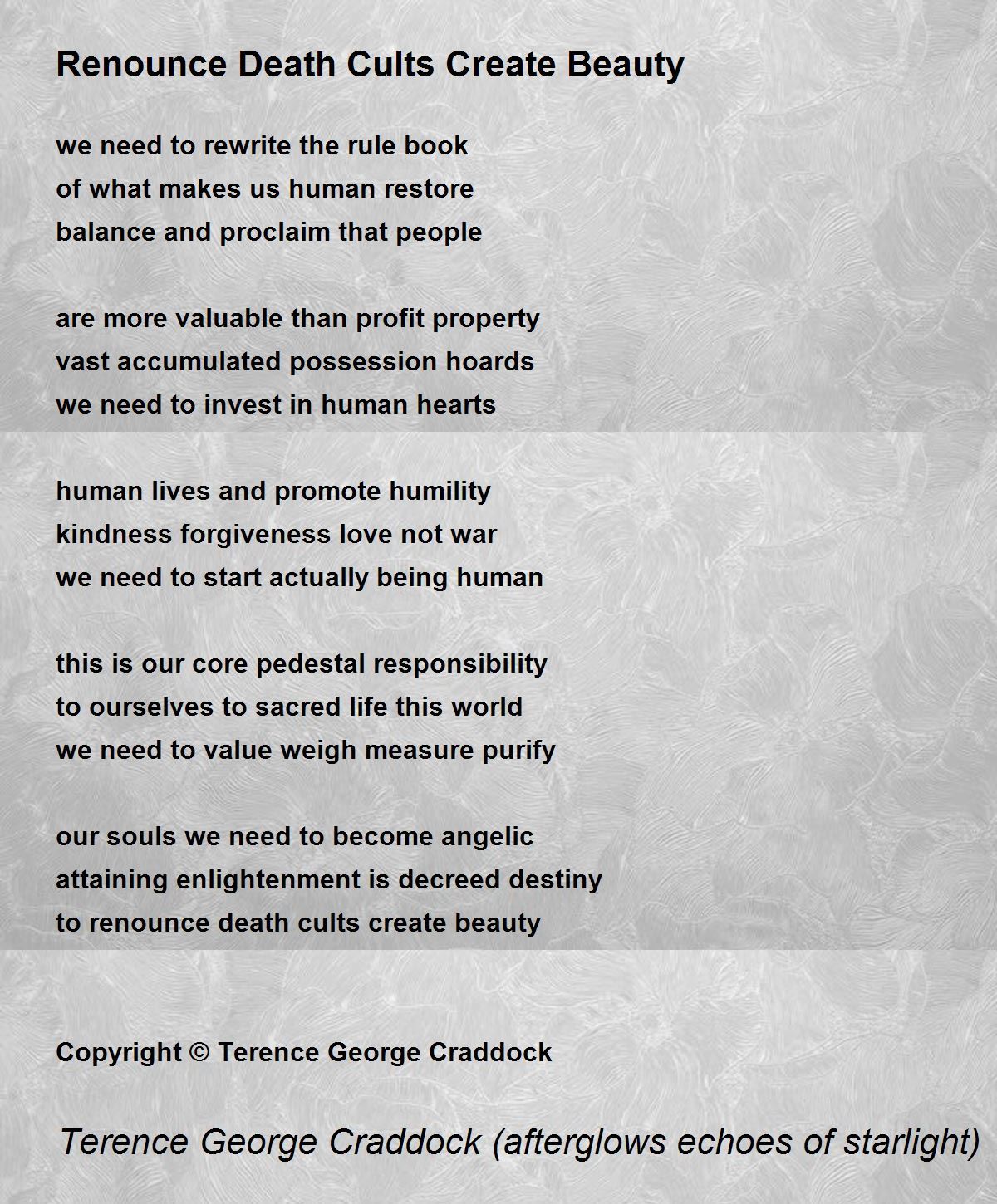 to renounce death cults create beauty