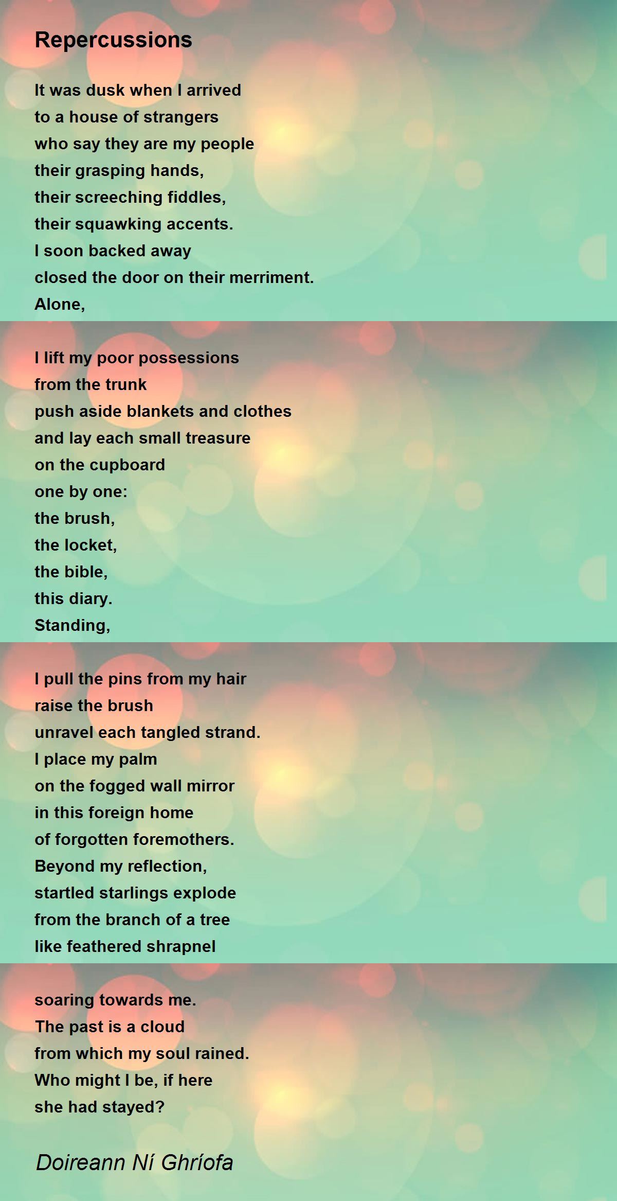 Who is she? An Irish writer, a Catholic poet or a feminist? Is she about lineage, heredity and tradition? An excellent poem telling a lot about identity and search for lost traditions.Poetry to her is a delving into Gaelic things and consciousness, what it is that constitutes the psyche of Ireland and Irishness.
