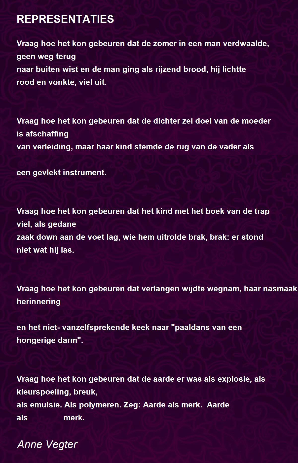 Vraag hoe het kon gebeuren dat de dichter zei doel van de moeder is afschaffing