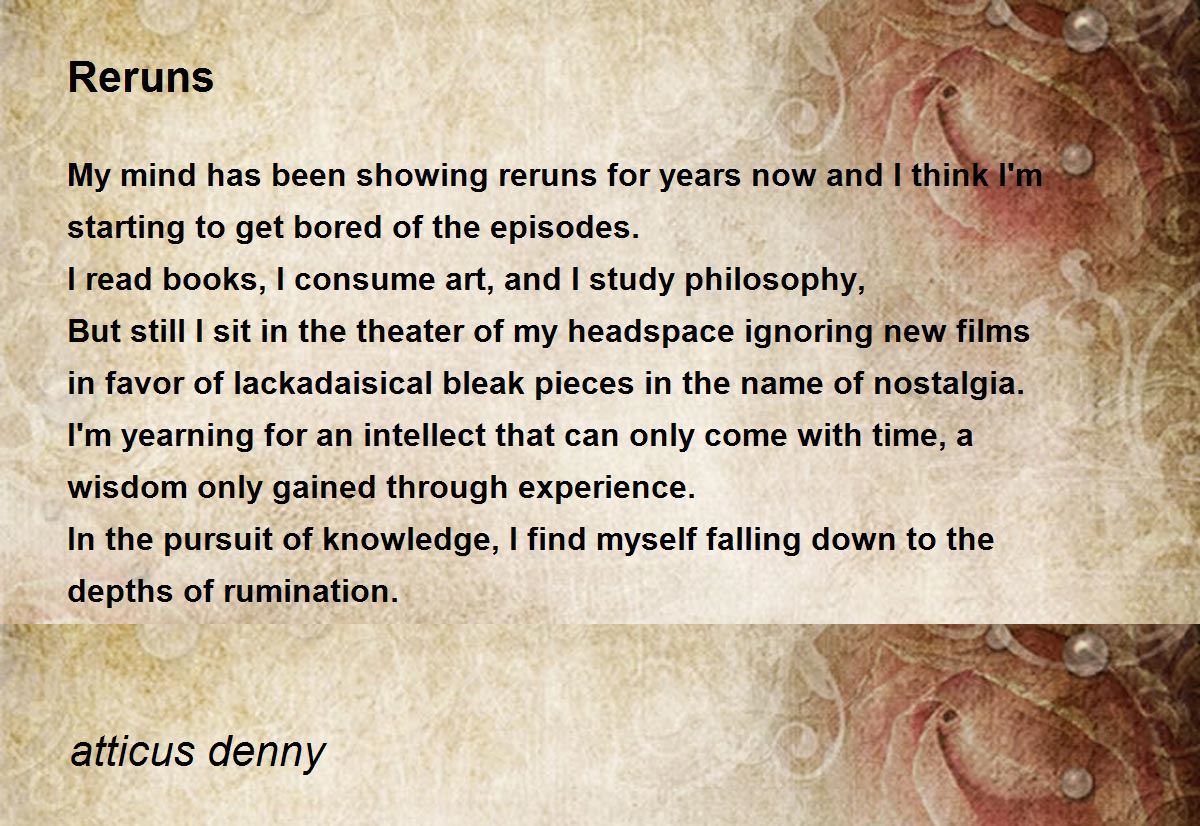 My mind has been showing reruns for years now and I think I'm starting to get bored of the episodes.