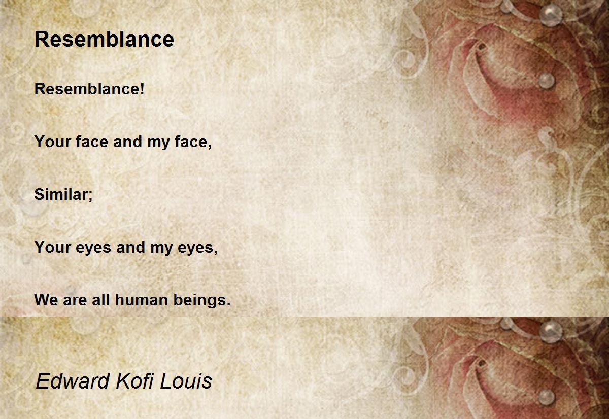 Resemblance! Your face and my face, Similar; Your eyes and my eyes, We are all human beings.