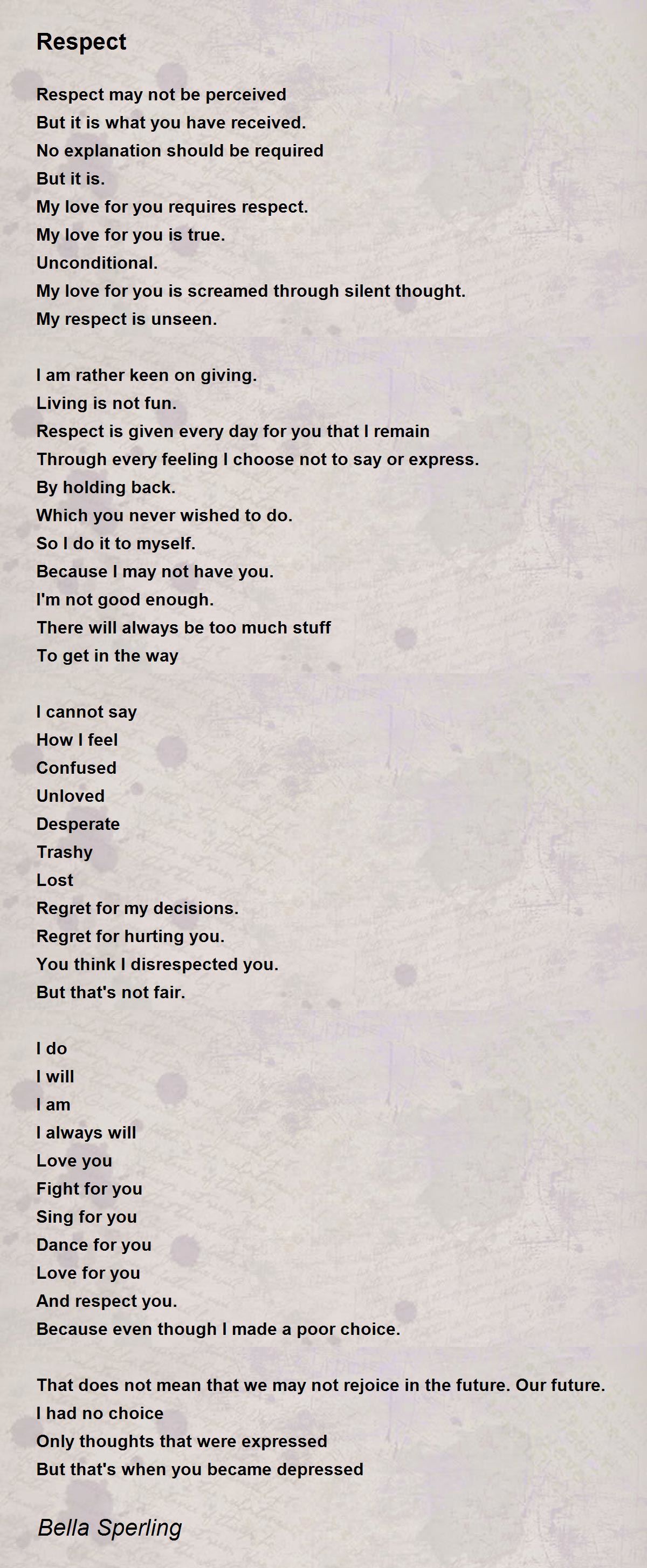 Respect is given every day for you that I remain