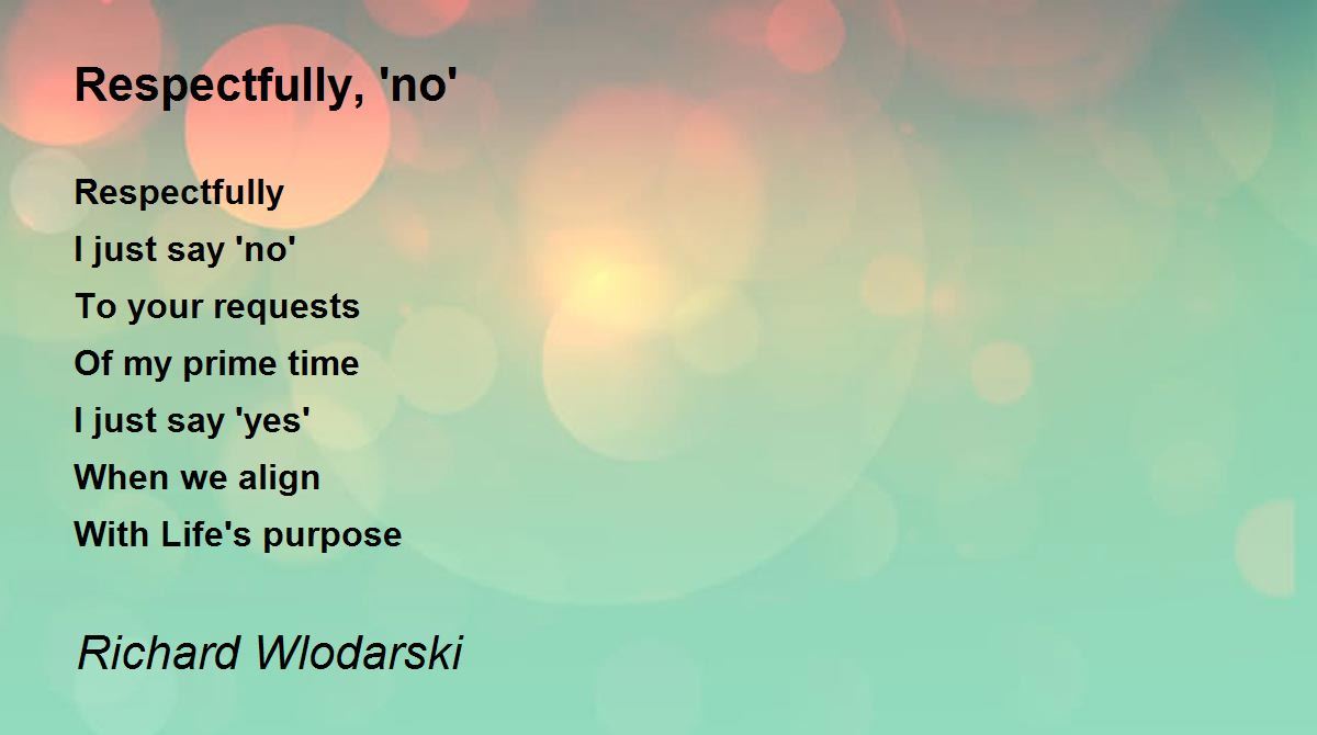 Respectfully I just say 'no' To your requests Of my prime time I just say 'yes' When we align With Life's purpose