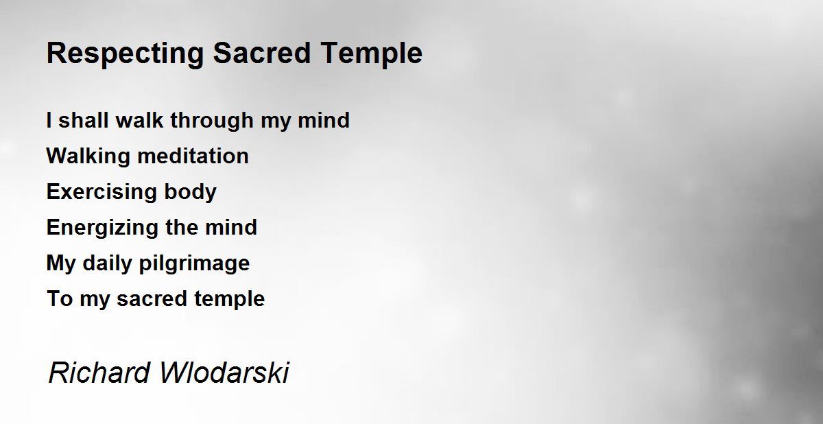 I shall walk through my mind Walking meditation Exercising body Energizing the mind My daily pilgrimage To my sacred temple