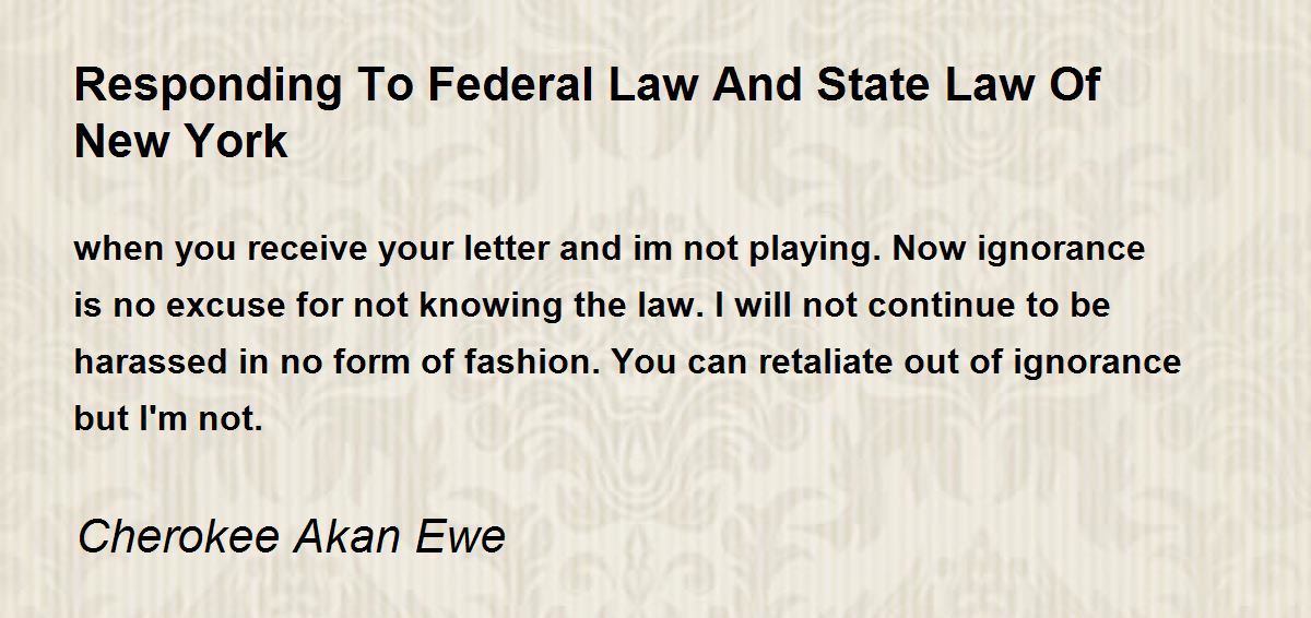 when you receive your letter and im not playing. Now ignorance is no excuse for not knowing the law. I will not continue to be harassed in no form of fashion. You can retaliate out of ignorance but I'm not.
