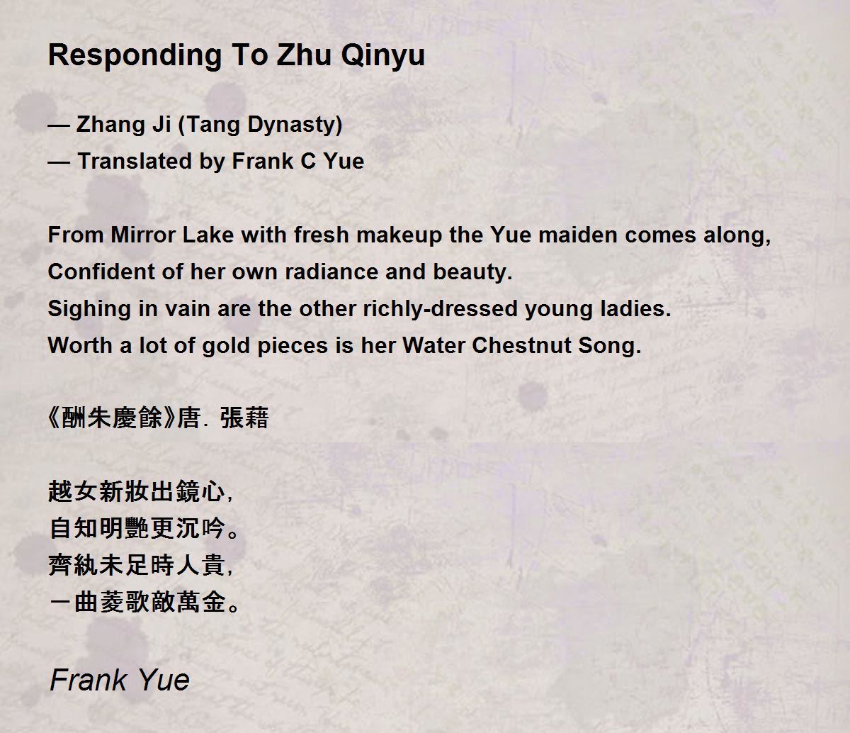 From Mirror Lake with fresh makeup the Yue maiden comes along,