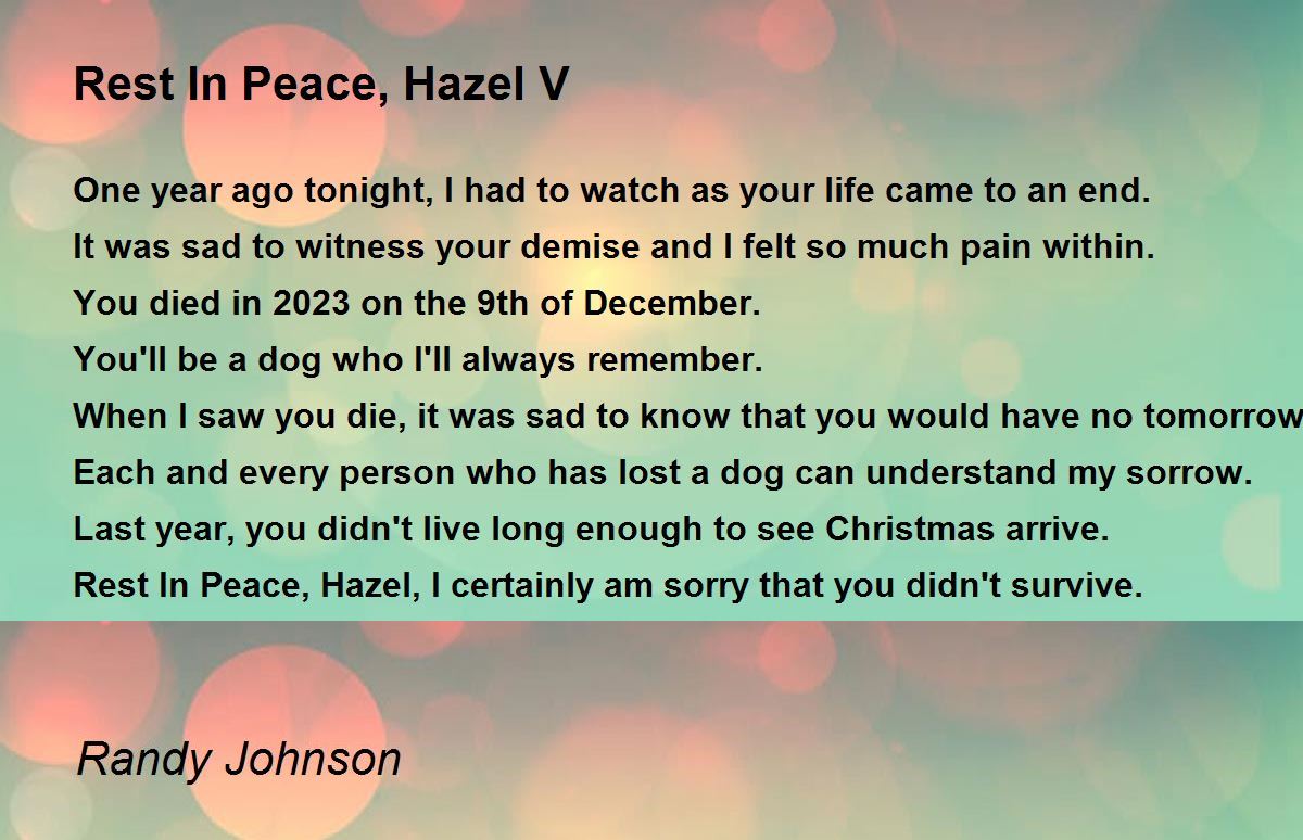Rest In Peace, Hazel, I certainly am sorry that you didn't survive.