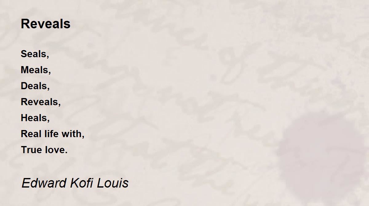Seals, Meals, Deals, Reveals, Heals, Real life with, True love.