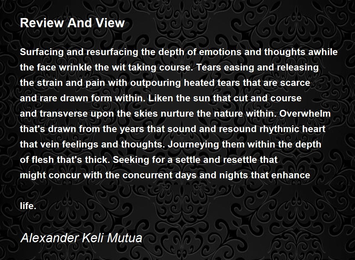 Surfacing and resurfacing the depth of emotions and thoughts awhile the face wrinkle the wit taking course. Tears easing and releasing the strain and pain with outpouring heated tears that are scarce and rare drawn form within. Liken the sun that cut and course and transverse upon the skies nurture the nature within. Overwhelm that's drawn from the years that sound and resound rhythmic heart that vein feelings and thoughts. Journeying them within the depth of flesh that's thick. Seeking for a settle and resettle that might concur with the concurrent days and nights that enhance life.