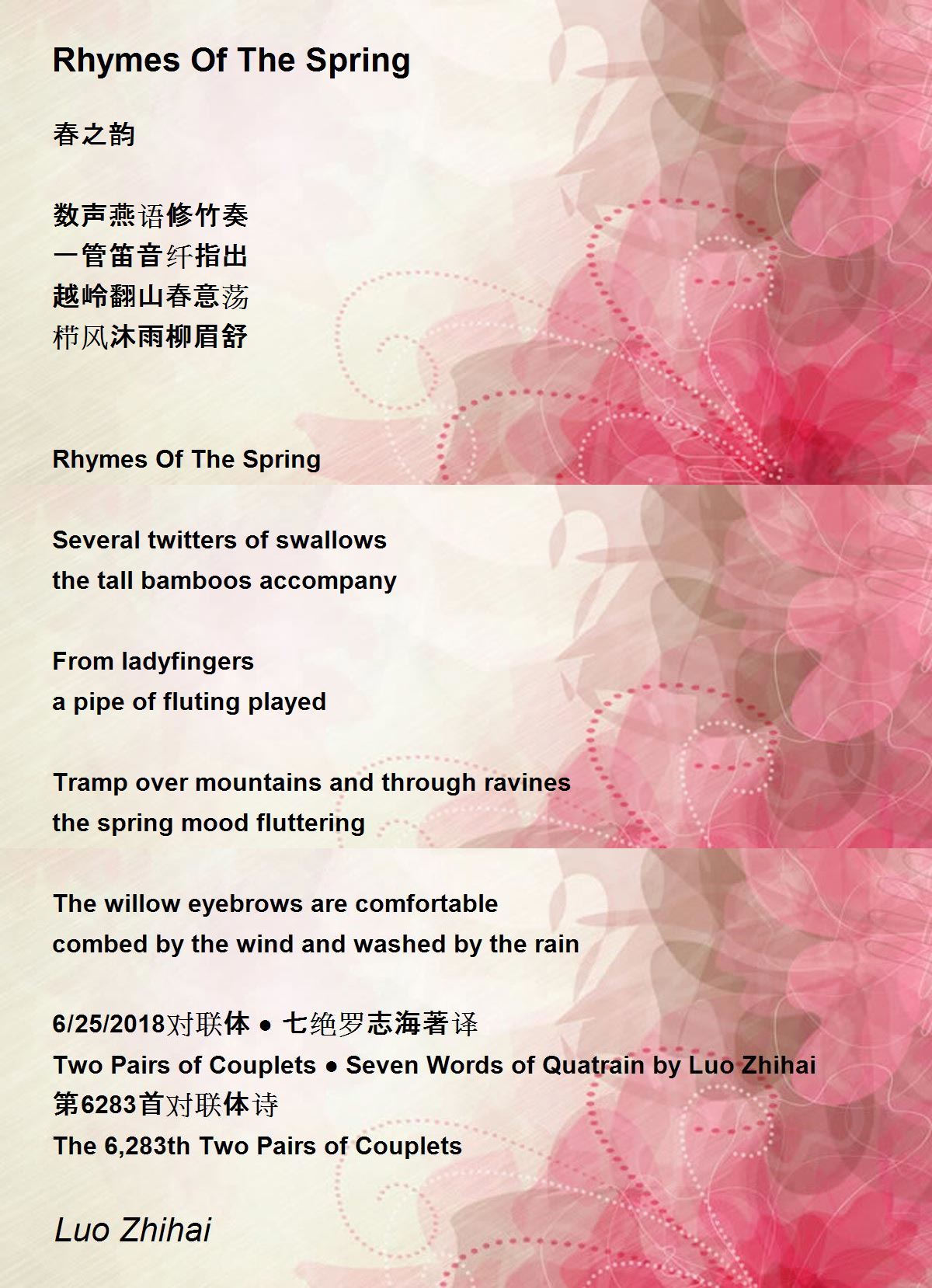 6/25/2018对联体 ● 七绝罗志海著译