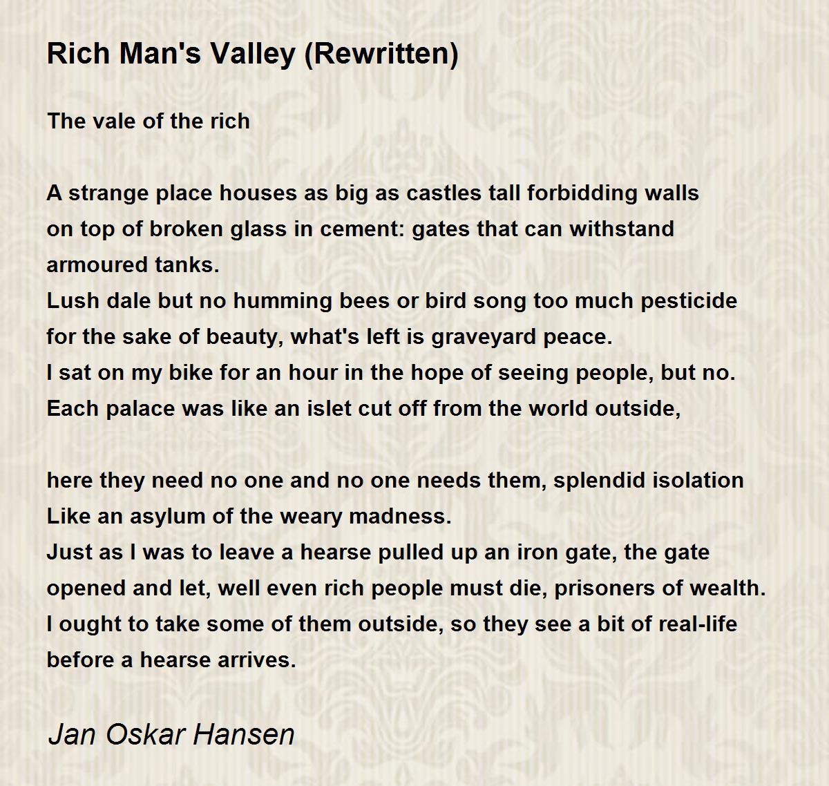 The vale of the rich