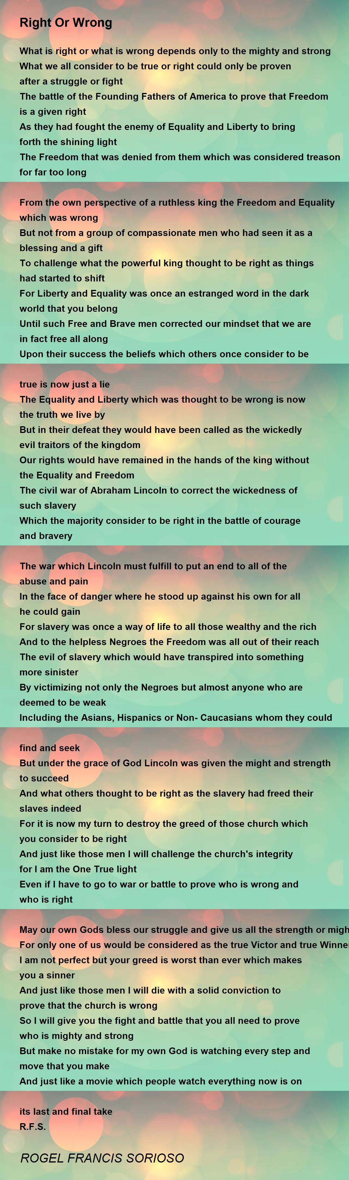 The war which Lincoln must fulfill to put an end to all of the abuse and pain