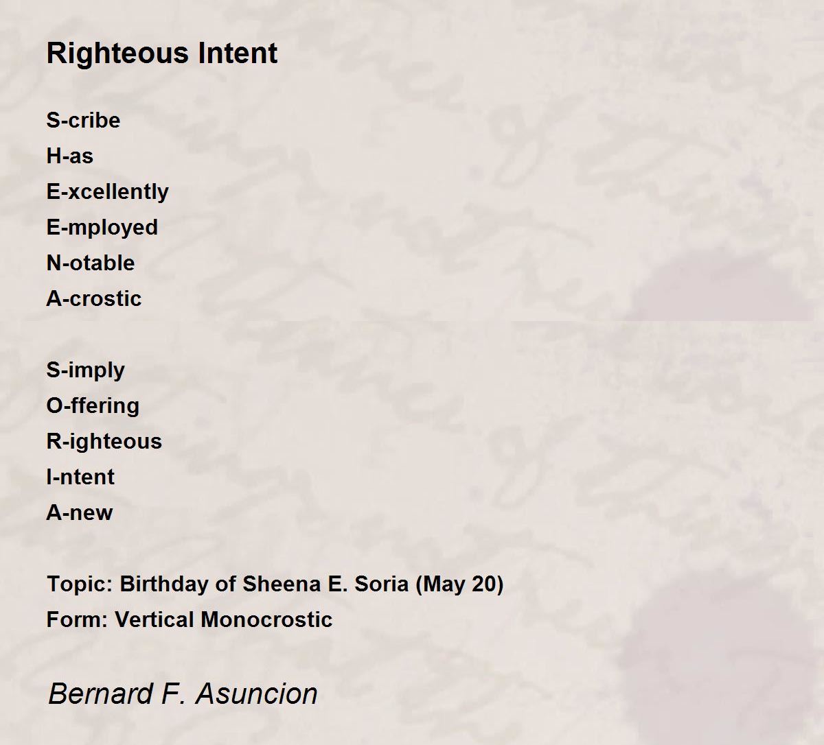 Topic: Birthday of Sheena E. Soria (May 20)