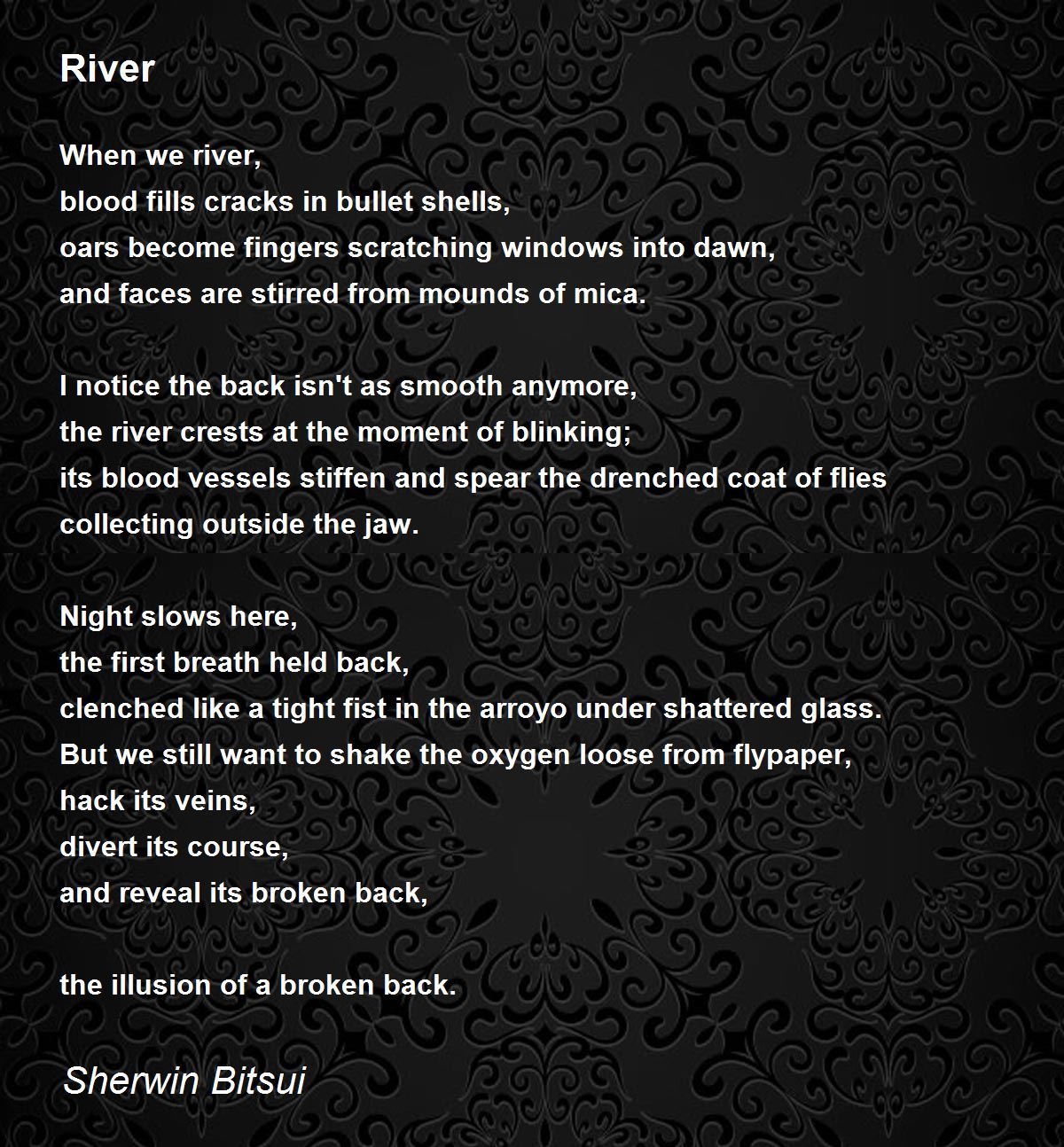 and reveal its broken back,