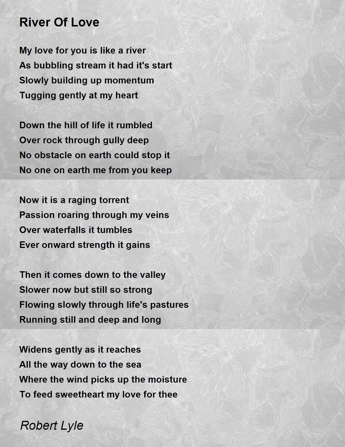 Loves course through life represented by a river as it makes its way from source to sea and back to source again