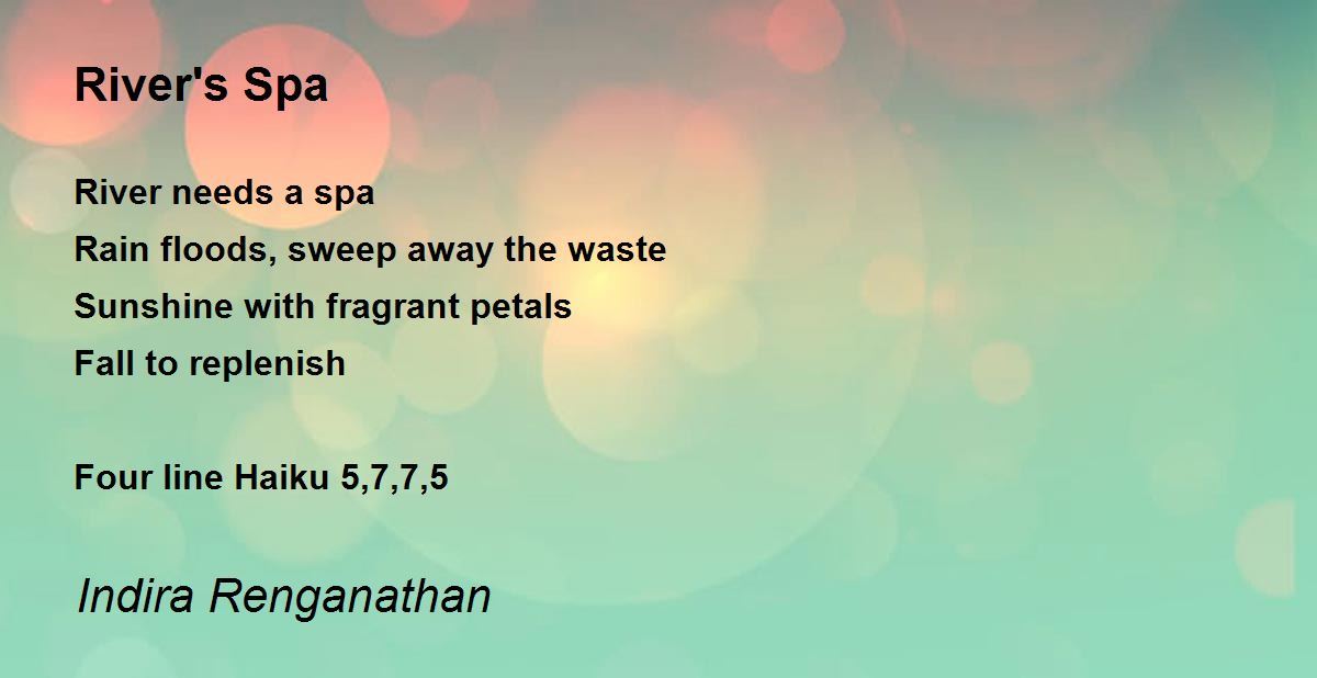 River needs a spa Rain floods, sweep away the waste Sunshine with fragrant petals Fall to replenish Four line Haiku 5,7,7,5