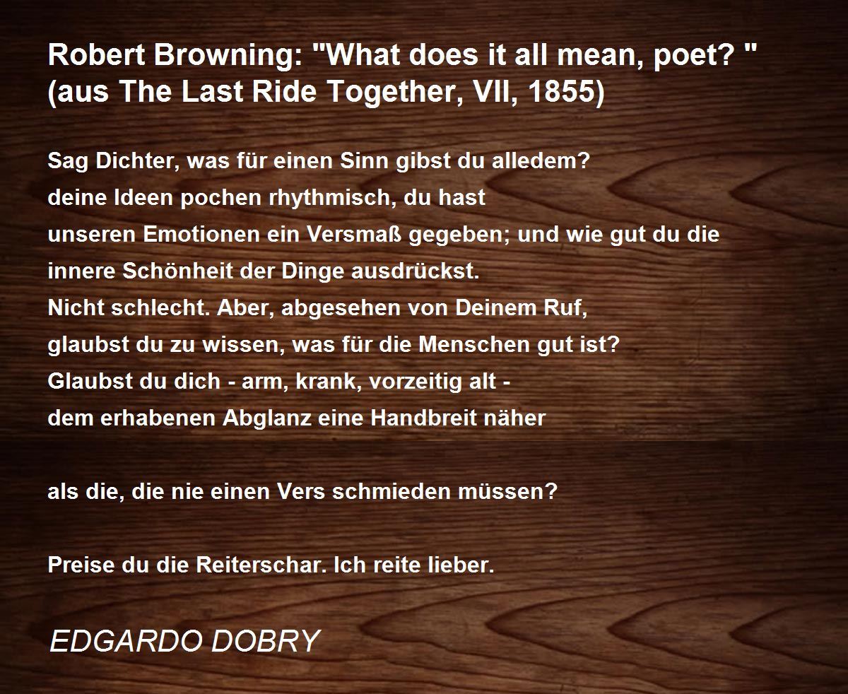 Sag Dichter, was für einen Sinn gibst du alledem?