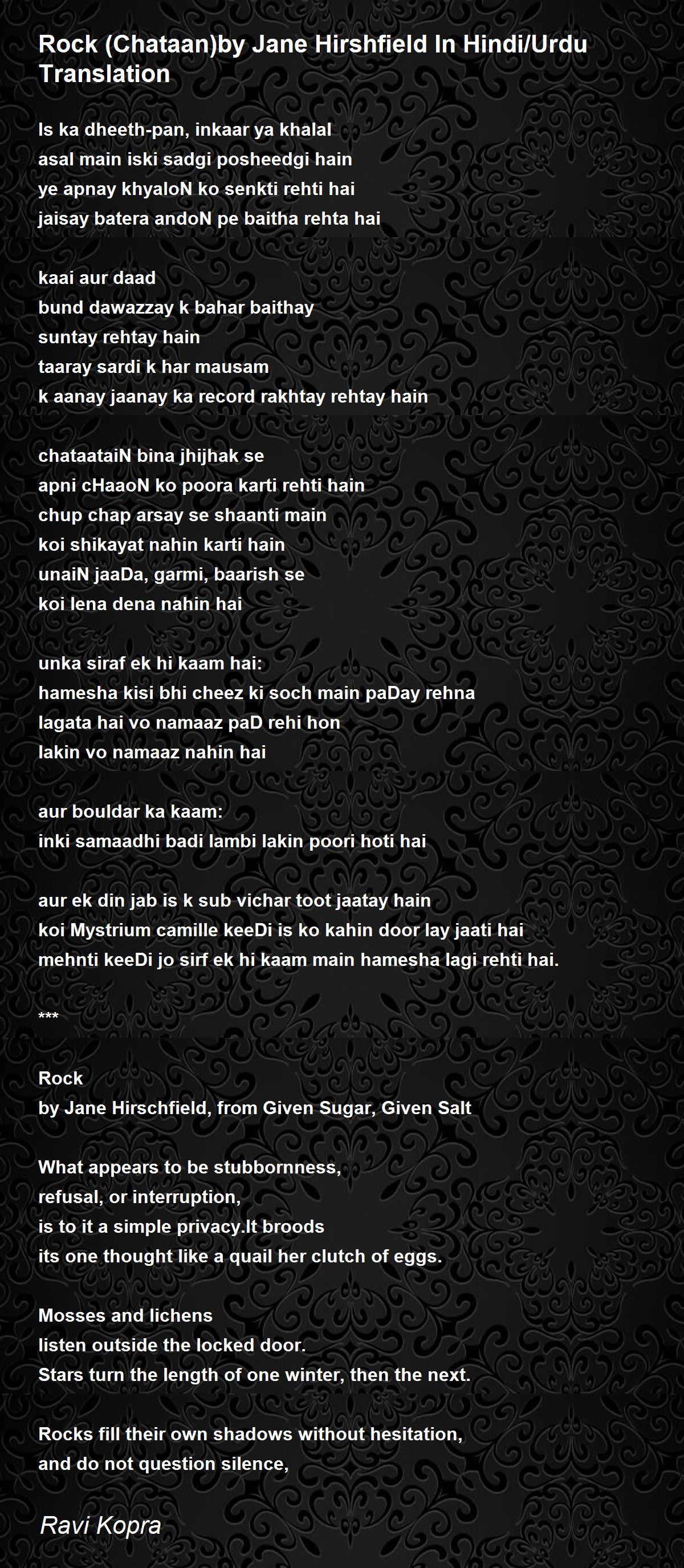 by Jane Hirschfield, from Given Sugar, Given Salt
