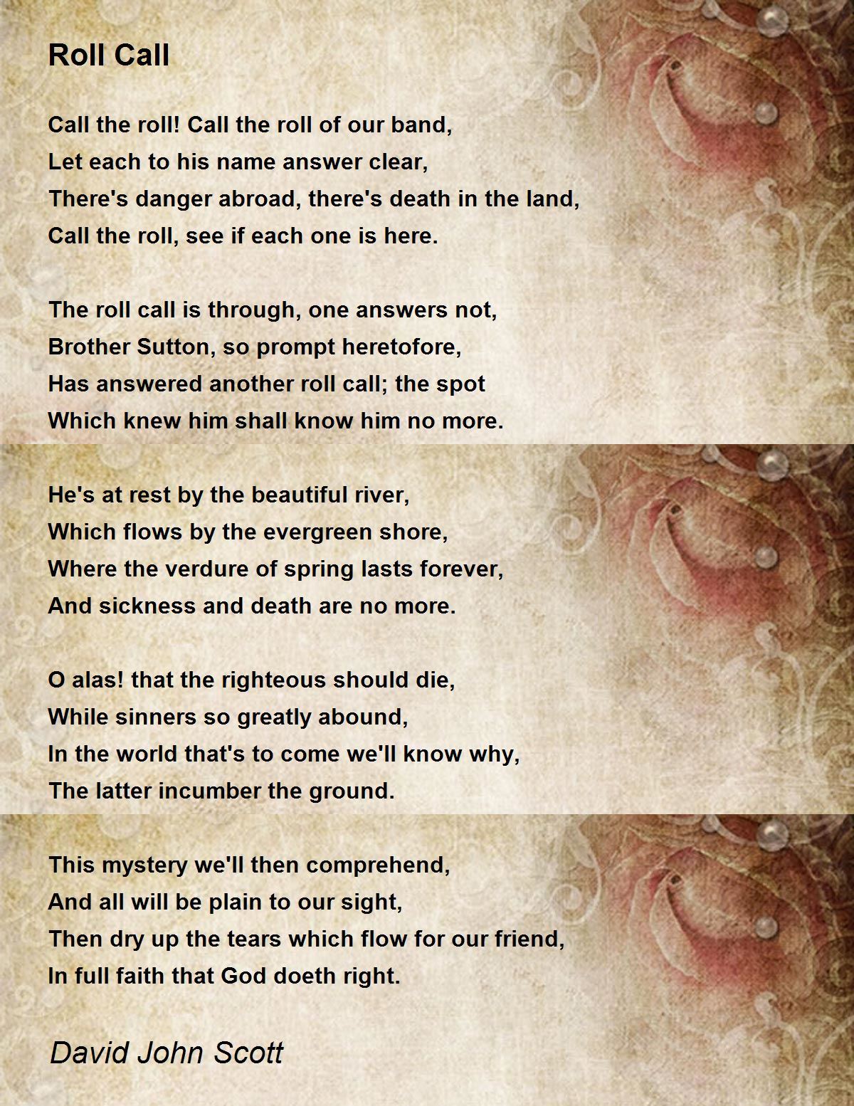 Has answered another roll call; the spot