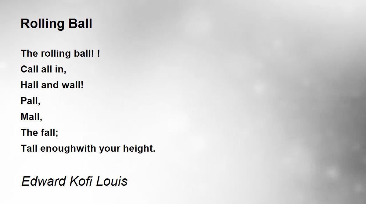 The rolling ball! ! Call all in, Hall and wall! Pall, Mall, The fall; Tall enoughwith your height.