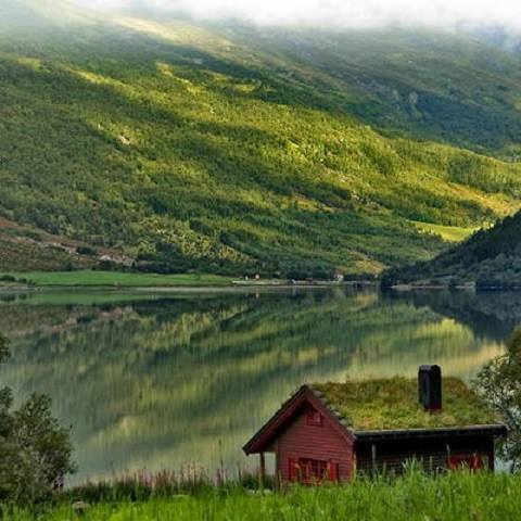 A cabin set ‘long side the lake