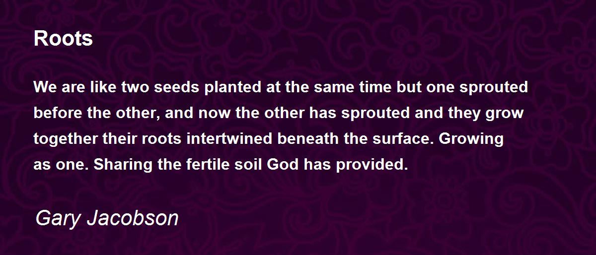 We are like two seeds planted at the same time but one sprouted before the other, and now the other has sprouted and they grow together their roots intertwined beneath the surface. Growing as one. Sharing the fertile soil God has provided.