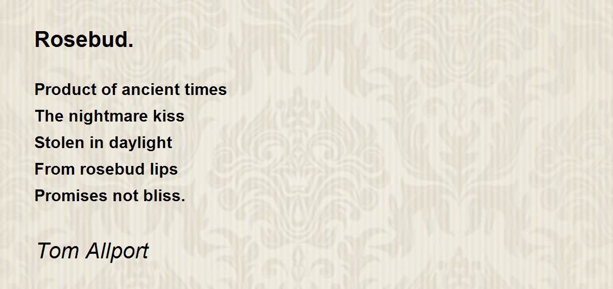 Product of ancient times The nightmare kiss Stolen in daylight From rosebud lips Promises not bliss.